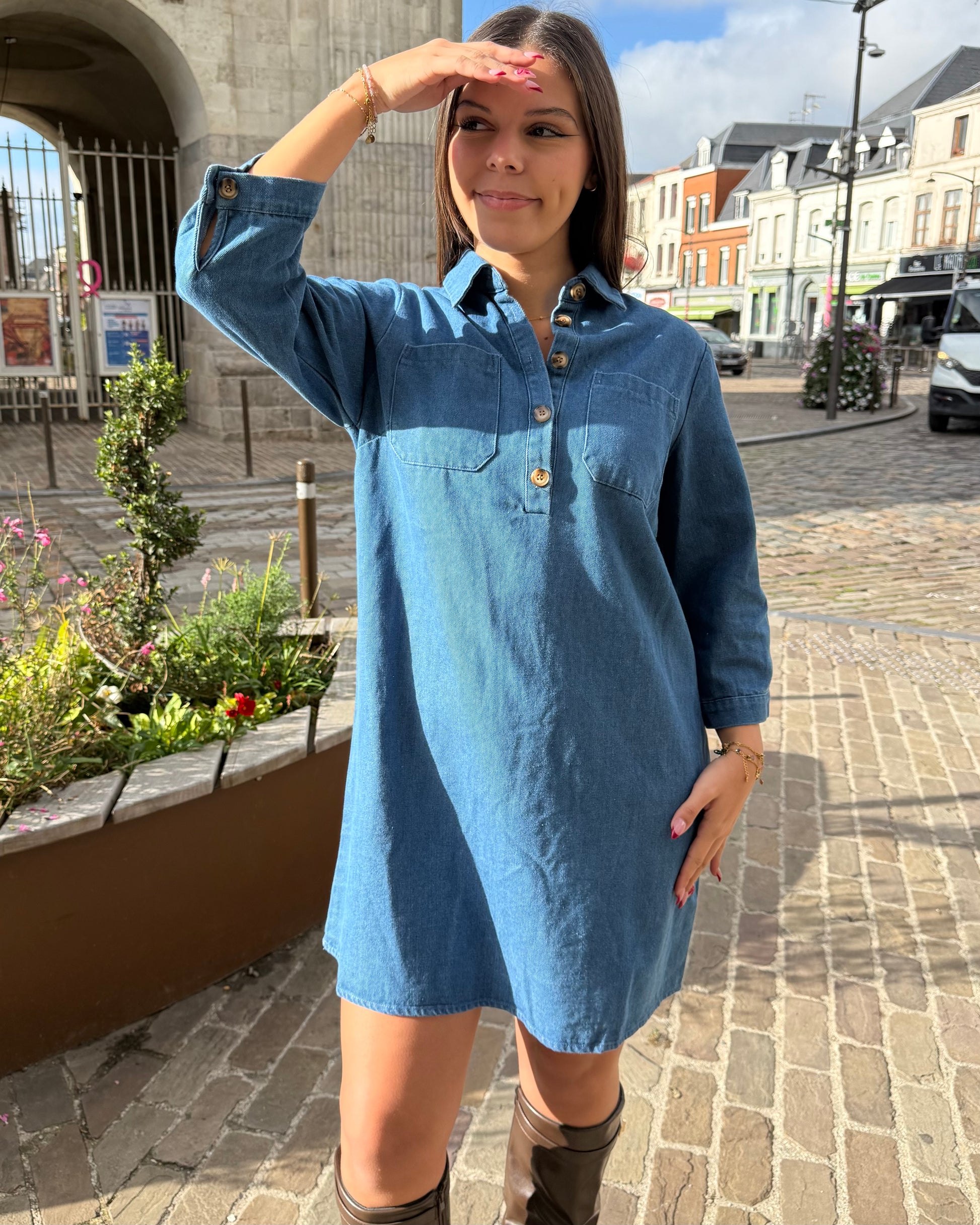 Robe en jean avec boutons et manches 3/4.